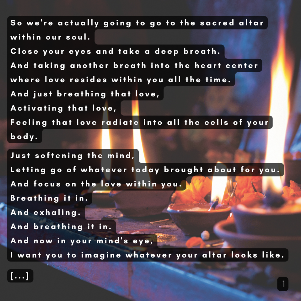 Our focus this year is our 31 Days of Harvest where we will spend daily time meditating on topics such as food, meaningful gatherings, ancestors, animals, and more! We will provide daily moments to take a breath, reflect, and reconnect with ourselves, loved ones, and the Earth.